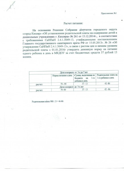 Документ об установлении размера платы, взимаемой с родителей (законных представителей)